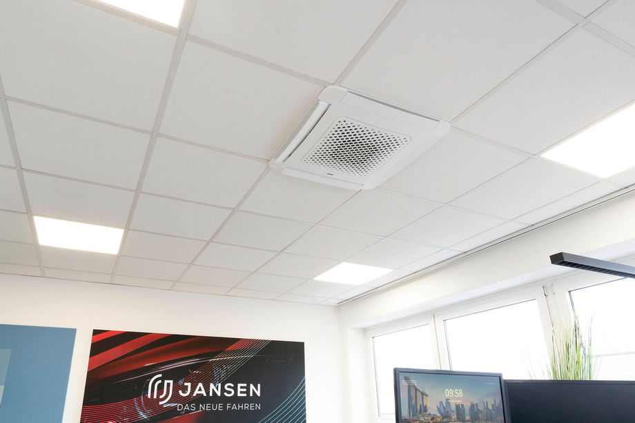 Le ventilo-convecteur Ultra, un véritable classique du secteur de l’équipement technique du bâtiment, présente des caractéristiques similaires et se retrouve dans d'innombrables espaces de vente en Europe. Chez le concessionnaire Jansen, il se trouve au plafond de l'exposition conformément à son usage et rafraîchit, chauffe et ventile avec efficience énergétique grâce aux ventilateurs EC et au design hexagonal du boîtier. Le modèle Ultra, adapté aux pompes à chaleur, efficient, silencieux et disponible dans différentes tailles, reste un des appareils les plus pertinents du marché.