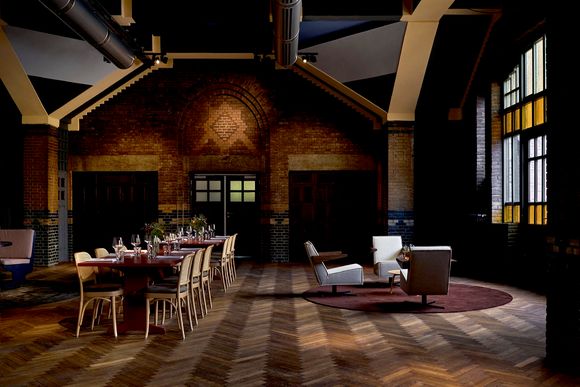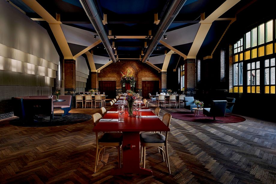 Comme dans le restaurant intégré De Refter, dont le nom fait référence au passé du monastère : De Refter est la désignation néerlandaise du réfectoire d’une abbaye. Et c’est exactement l’esthétique du lieu : cette pièce spacieuse arbore des murs de briques brutes, des fenêtres aux vitraux colorés, des arcs maçonnés, un parquet à chevrons et de hauts plafonds. Des plafonds suffisamment hauts pour accueillir largement les diffuseurs tubulaires RRA de Kampmann. Deux canaux d’entrée d’air RRA traversent le restaurant en biais et contrastent avec l’ambiance historique du lieu par leur esthétique moderne galvanisée. Un coup de génie architectural extrêmement réussi.