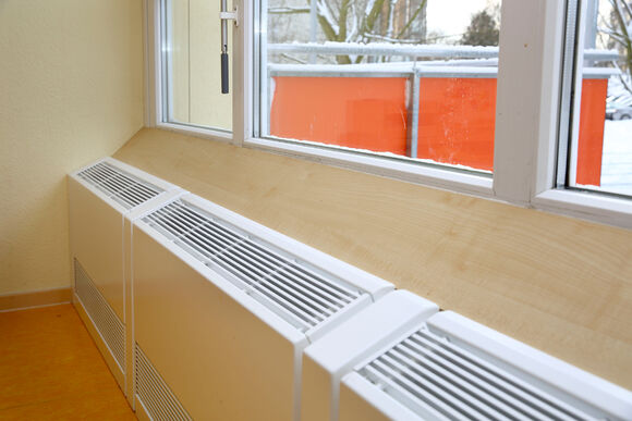 Die im gesamten Gebäude verbauten Konvektoren mit ihren elliptischen Kernrohren aus Stahl sowie den dauerhaft verbundenen Stahllamellen im Inneren sorgen für eine effiziente Wärmeübertragung.