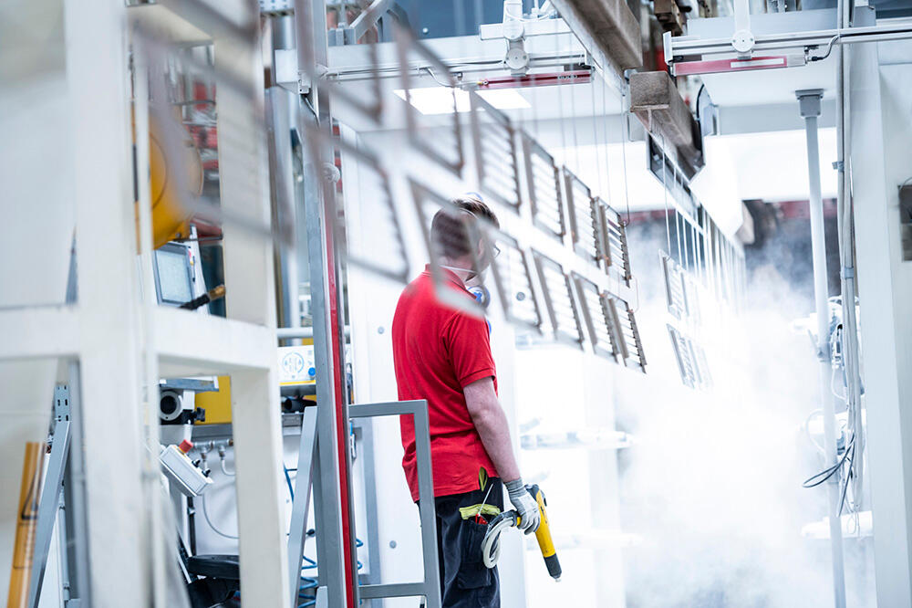 Genau. So kann man das sagen. 27 Prozent des Gasbedarfes geht in die Prozessenergie. Dabei ein Großteil in die Pulverbeschichtung unserer Metallbauteile. Hier haben wir vor einigen Jahren schon eine Wärmerückgewinnung in den Prozess integriert. Und aktuell arbeiten wir daran, mit der Abwärme der Pulverbeschichtungsanlage die im Prozess notwendigen Vorbehandlungsbecken zu temperieren. Das sind schon spannende Projekte, die wir hier angehen.
