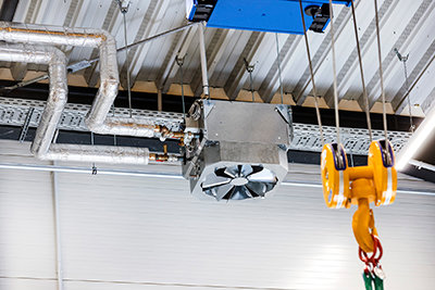 Bei Vrielmann fiel die Wahl auf eine Deckenmontage der TOP Lufterhitzer. Die Deckenanordnung hat gegenüber der Wandanordnung entscheidende Vorteile: