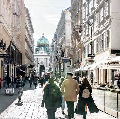 Die beeindruckende Ringstraße führt um die Innere Stadt herum, gesäumt von markanten Bauwerken und Kampmann-Referenzen wie dem Burgtheater und dem Parlament.