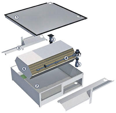 1 Gehäusedeckel 2 Wasserabfuhr 3 Luftführungsblech
