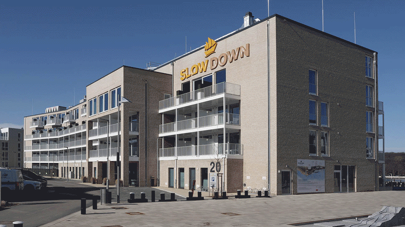 Das SlowDown setzt auf ein zweiseitiges Konzept: Vorrangig ist es ein Tagungscenter, aber im Sommer, wenn es weniger Veranstaltungen gibt, sind es mehrheitlich Sonnenhungrige, die das Hotel bevölkern und draußen (dank Meeresluft) wie drinnen (dank Kampmann) gutes Klima genießen. Von der sparsamen und absolut stillen Kühldecke im Seminartrakt mit integrierten Luftauslässen für beste Luftqualität bis zu Niedertemperatur-Unterflurkonvektoren vor den bodentiefen Fenstern der Hotelbar. Und natürlich sorgt Kampmann auch in den Zimmern mit Venkon Fan Coils für Komfortklima.
