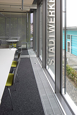 Bei Neubauten mit bodentiefen Fenstern eignen sich Unterflurkonvektoren hervorragend, um die Räumlichkeiten bedarfsorientiert zu heizen, zu kühlen und zu lüften. Die richtige Anordnung und Auslegung von Unterflurkonvektoren verhindert Zugluft und sorgt für eine thermische Behaglichkeit im gesamten Raum. Das ist wichtig, denn selbst sehr gut isolierte Glasfronten lassen Sonnenstrahlen hinein, die zu einer asymmetrischen Strahlung und damit verringertem Komfort führen. Unterflurkonvektoren zeichnen sich dabei durch eine schnelle Reaktionszeit aus und bieten hohen Komfort auch bei höheren Lasten.