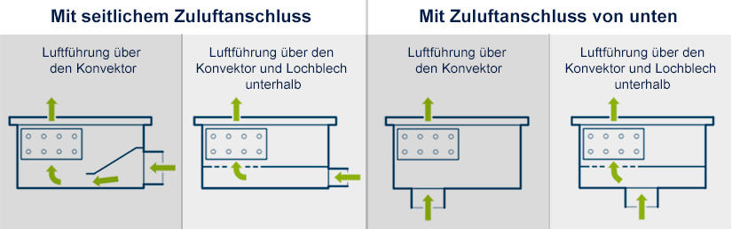 Zuluftvarianten für Katherm Unterflurkonvektoren