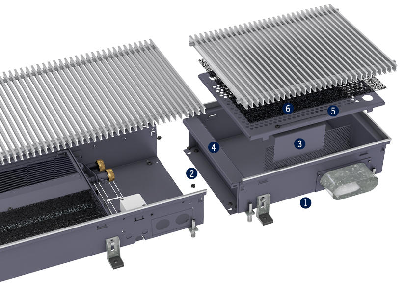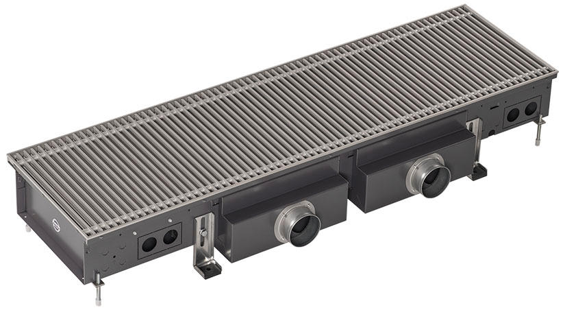 Wir bieten für jedes Produkt in der Unterflurkonvektoren-Familie die Möglichkeit, Zuluftkanäle zu ergänzen. Grundsätzlich bieten wir zwei Möglichkeiten Unterflurkonvektoren mit der Funktion Zuluft zu ergänzen. Zum einen kann jedes Produkt in der Katherm-Familie um einen 400 mm langen Standard-Zuluftkanal ergänzt werden. Zum anderen können die Kanäle auf Wunsch konstruktiv auch auf die jeweiligen Projektbedingungen vor Ort angepasst werden.